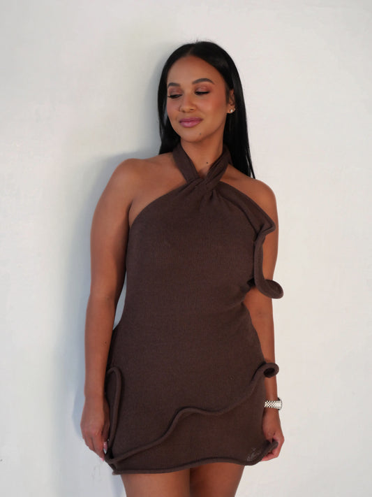 chocolate ribbed cutout mini dress